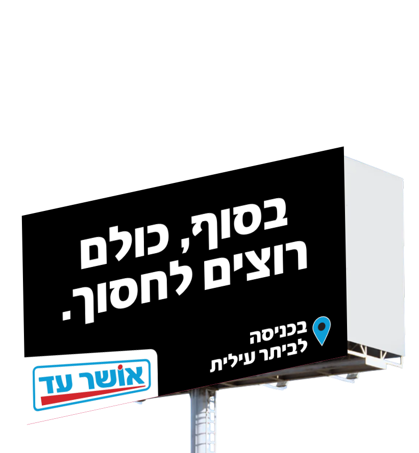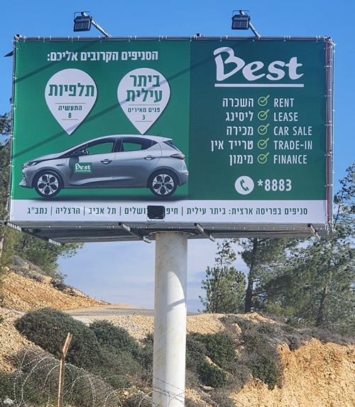 פרסום בשלטים שלנו מעניק חשיפה במיקומים אסטרטגיים, ומאפשרת נוכחות רחבה מול קהלים איכותיים, בצורה יעילה ומדוייקת